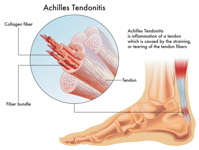 inflammation of an Achilles tendon. https://www.shutterstock.com/image-vector/medical-illustration-symptoms-achilles-tendonitis-inflammation-1947689296